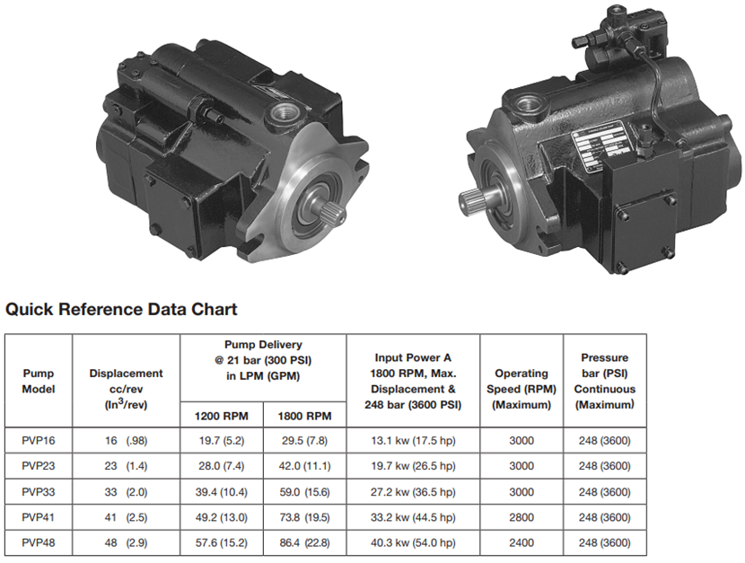 | 派克PVP系列柱塞泵特征: -高強度鑄鐵外殼 -快速響應時間 -兩件式外殼,便于維修 -公制先導閥、軸和端口可用 -可更換的青銅包覆端口板 -貫穿軸能力 -低噪聲水平 -可更換活塞滑板 | 派克PVP系列柱塞泵控制: -壓力補償 -負載感應 -馬力限制 -馬力和負載感應 -遠程壓力補償 -可調最大音量停止 -低壓備用 | 派克PVP系列柱塞泵特點/優點: -高強度鑄鐵外殼,可靠和安靜的操作 -可更換接口 -輕松安裝的進口/出口位置 -可替換的青銅配流盤 -可替換的柱塞滑靴壓盤 -通軸功能可提供SAEA或AA型止口 -低噪聲環境 -快速響應時間 -多種軸伸和油口可選 |